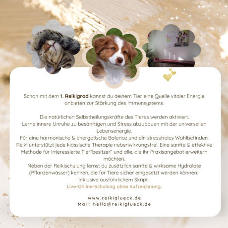 Reiki ersetzt keine tierärztliche Versorgung, Diagnose oder Therapie.
